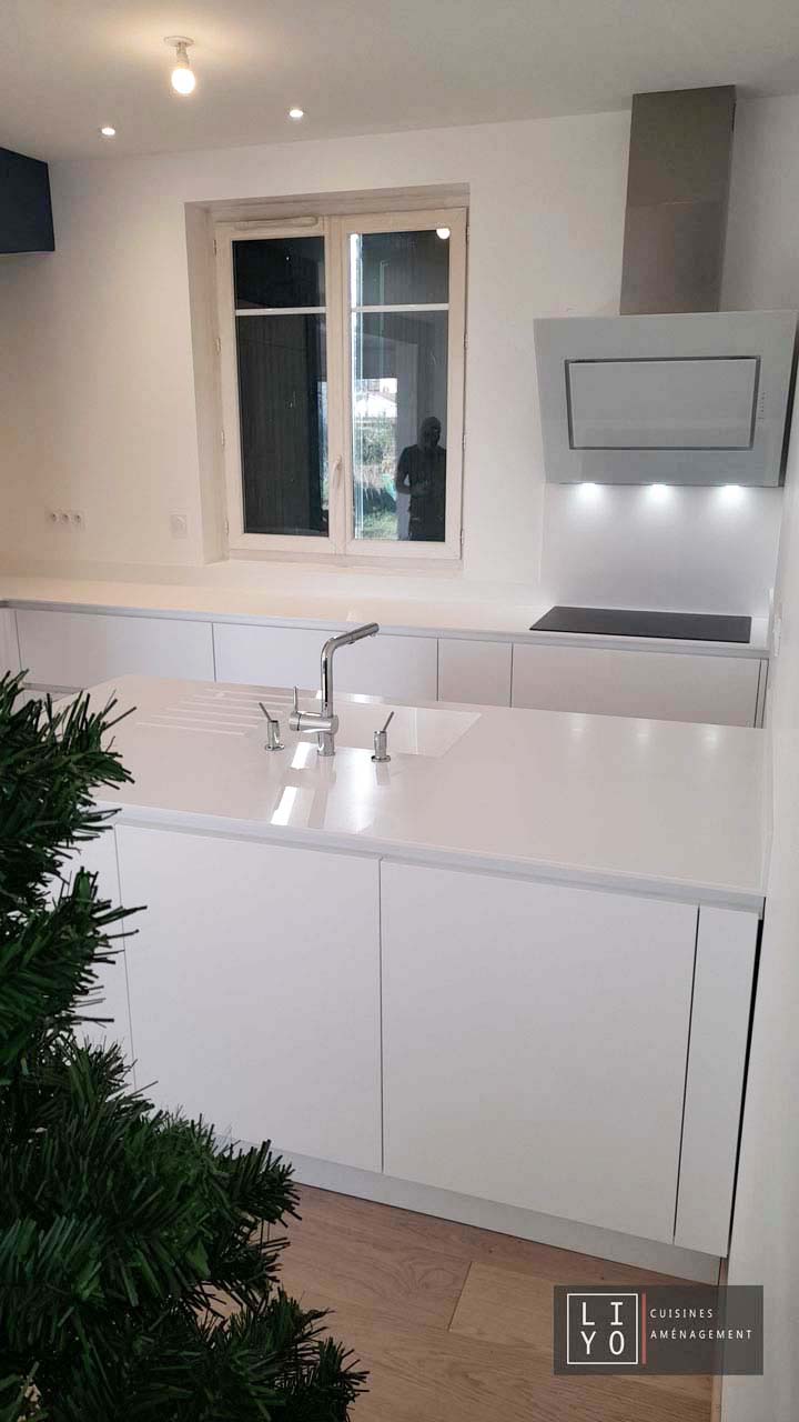 Nous avons réalisé cette cuisine blanche et plan de travail corian après une rénovation complète de cette pièce. Nous avons mis à l’honneur le blanc qui se marie a merveille avec le sol. Pensée dans les moindres détails, cette cuisine allie esthétique, fonctionnalité et convivialité afin de répondre parfaitement aux besoins du quotidien.